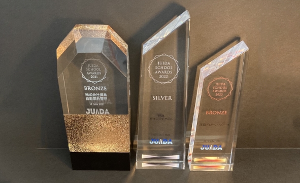 ドローン産業界の発展に向けて活動する「JUIDA(一般社団法人日本UAS産業振興協議会)」より、“安全に関わる知識と高い操縦技能を持つ人材を多く輩出すること”への貢献を評価され、2021年より優秀ドローンスクールとして、3年連続表彰されています(全国270以上のスクールより毎年3校選出)。「全国的に有名で実績がある講習機関で習いたい」という方におすすめのドローンスクールです。